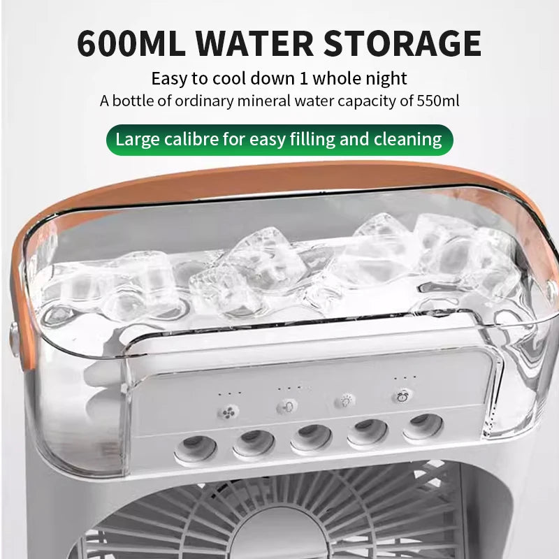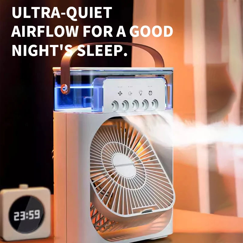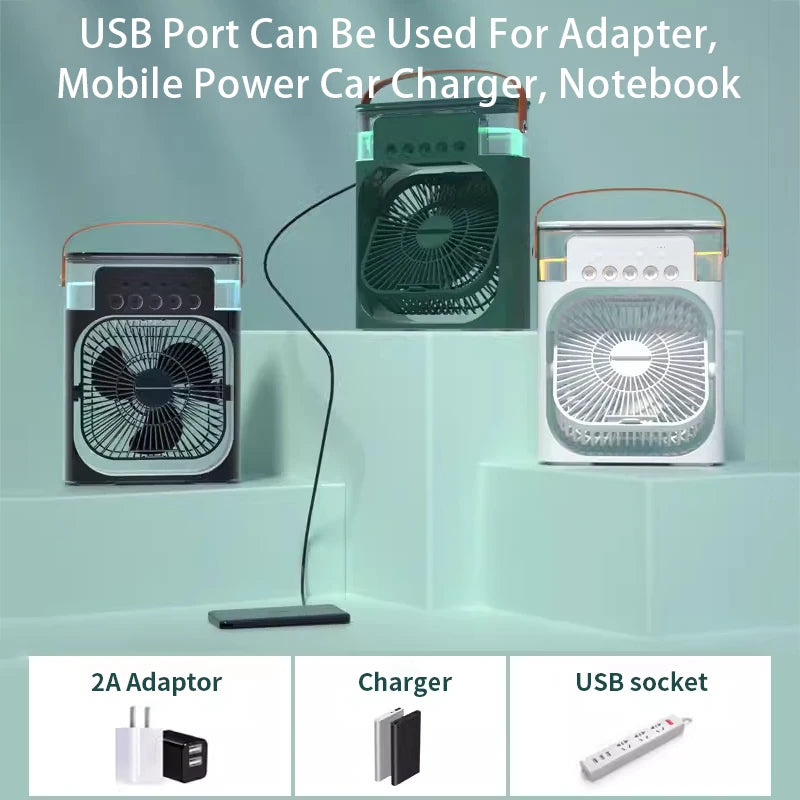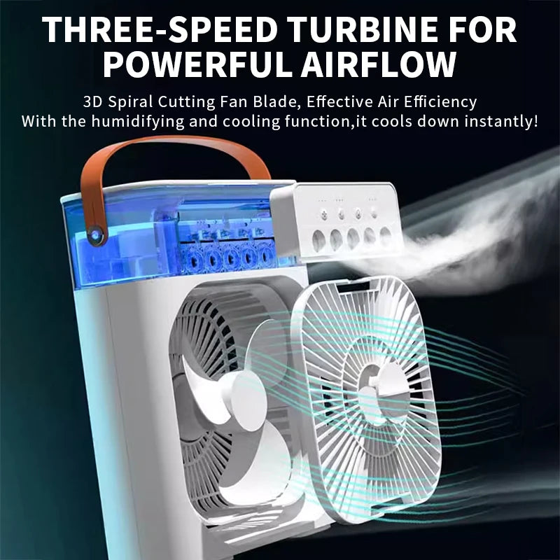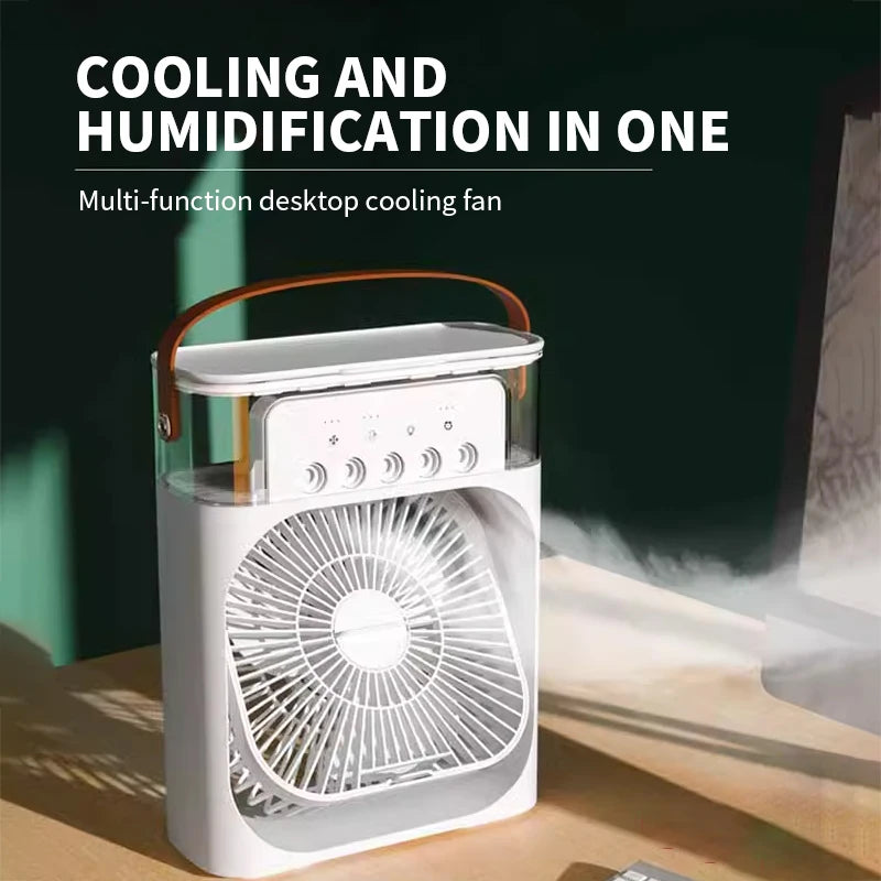 Stay cool, comfortable, and refreshed with our 3-in-1 Portable Fan Air Conditioner! Perfect for home or office use, this compact device combines a powerful fan, air cooler, humidifier, and LED night light, all in one sleek design.